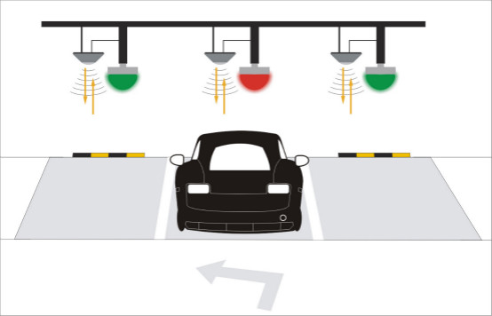 当车辆停在停车位时,米兰·(milan)的停车位车辆检测灯光控制器发出的超声波探测到有车辆,这时指示灯转变成红灯。